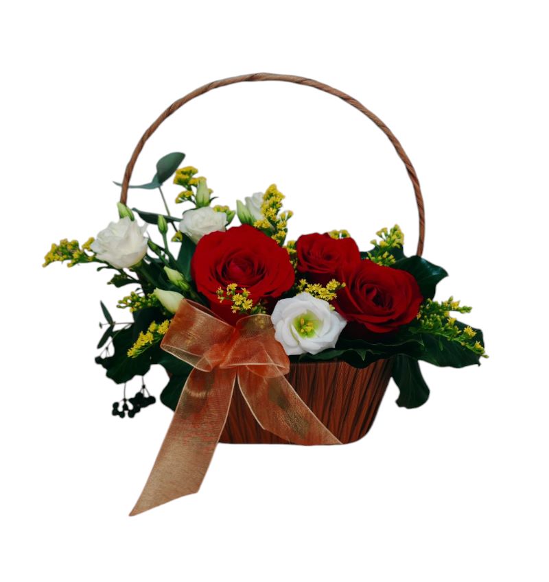 Întregul aranjament este așezat cu grijă în coșul oval, care completează frumusețea florilor și oferă o prezentare elegantă, ideală pentru cadouri, decoruri sau momente speciale în care florile vor să vorbească prin simplitate și bun gust.